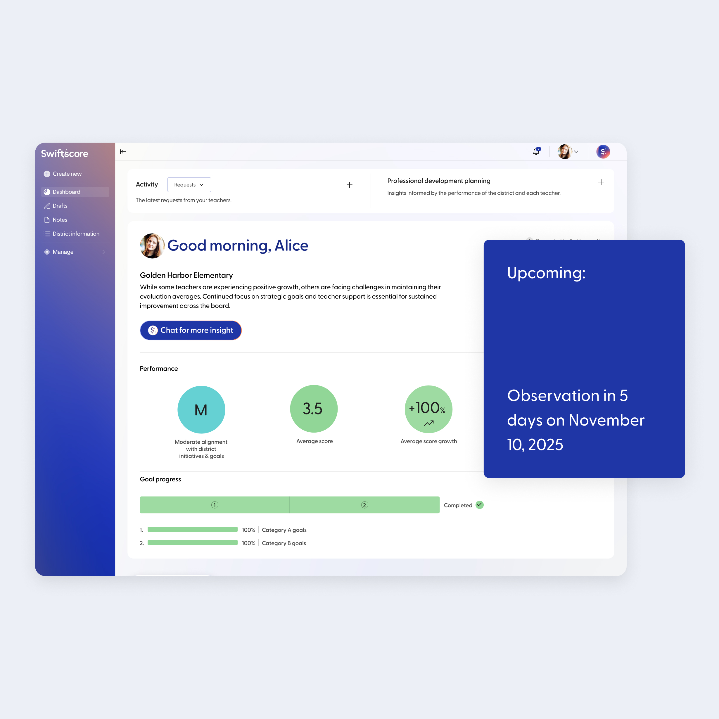 Let our AI analyze your observations and create personalized, actionable feedback aligned to teaching standards.